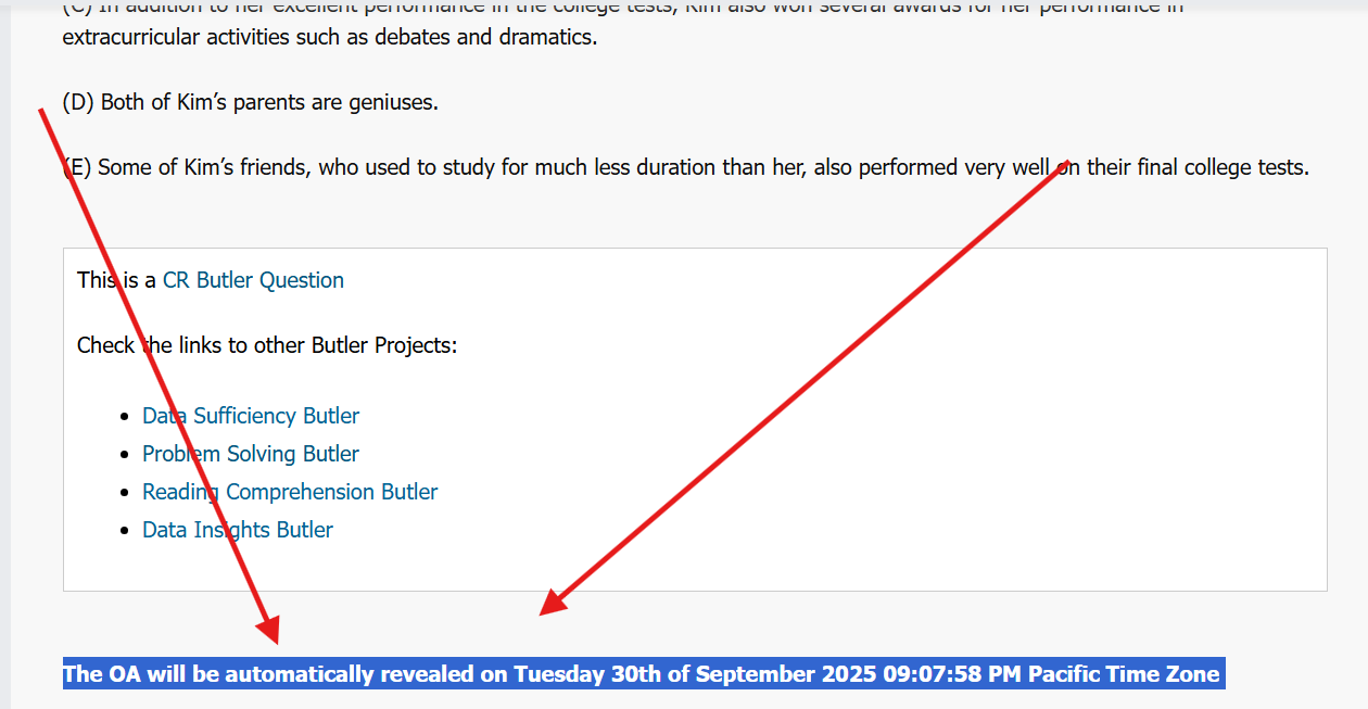 (A) The fact that Kim took classes from the Teaching Company is not the reason for her excellent performance in her college tests.