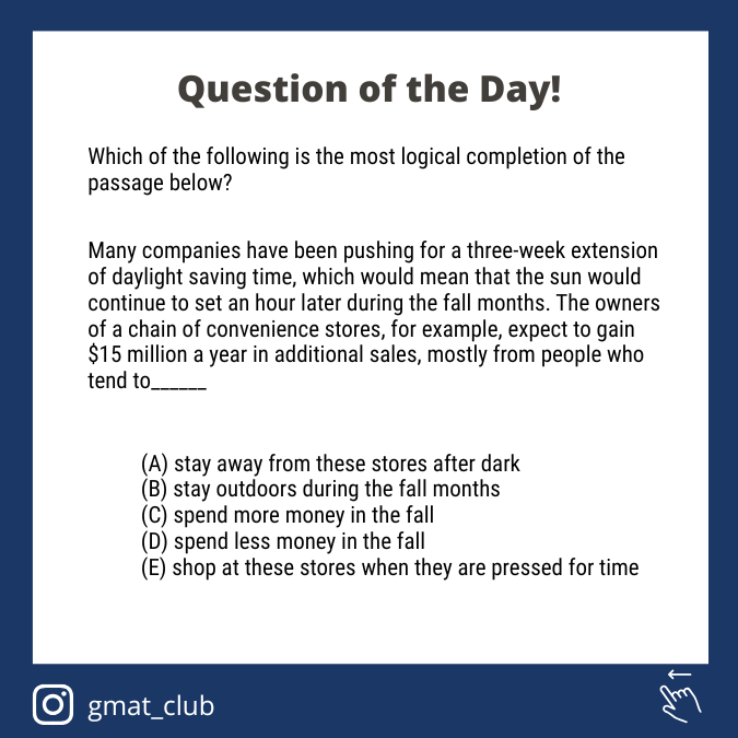 Thank you for using the timer - this advanced tool can estimate your performance and suggest more practice questions. We have subscribed you to Daily Prep Questions via email.