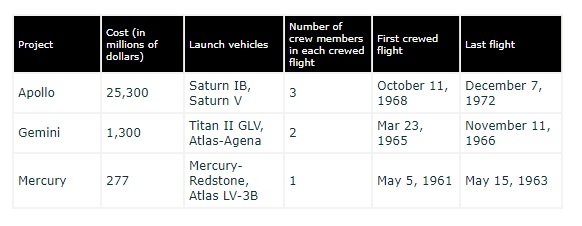 | Of the launch vehicles used in Projects Mercury, Gemini, and Apollo, the one with the highest mass-to-payload-capacity ratio was used in Project Apollo. |