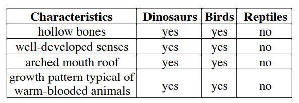 Then it goes on to give 4 specific points why it is likely that dinosaurs were warm blooded. The author uses present day evidence (warm blooded vs cold blooded animals today) to establish something about the past (how dinosaurs were millions of years ago)