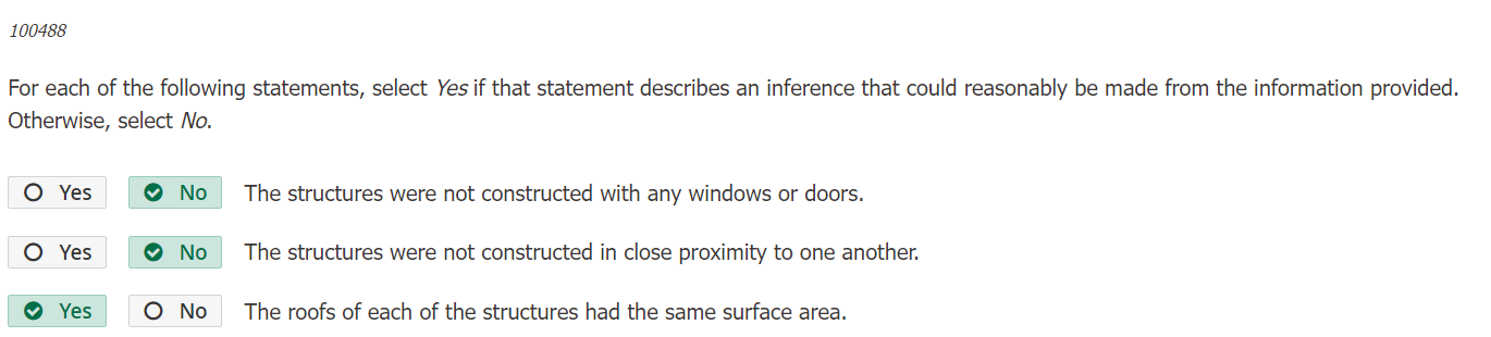 | The roofs of each of the structures had the same surface area. |