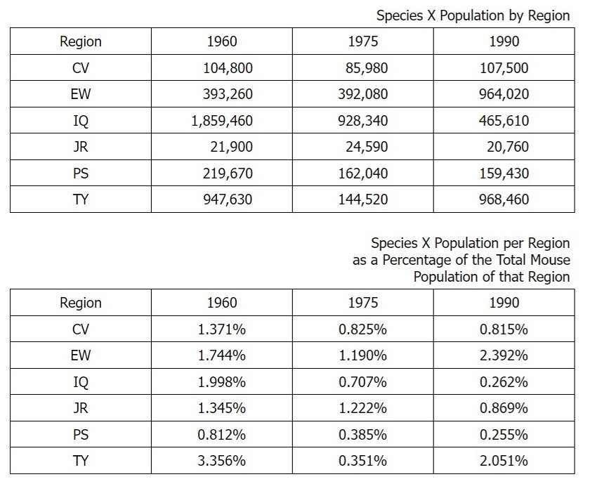 | The total mouse population of TY changed more from 1960 to 1975 than from 1975 to 1990. | ||