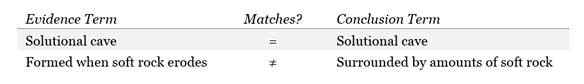 There is an assumed relationship between "formed from" and "surrounded by." In short, the argument says that Troglotopia Cave wasn't formed from soft rock because it's not surrounded by soft rock. We'll filter for answer choices that relate these two concepts.