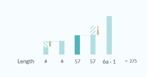 • Now, we can write the sum of all the sticks as: a + a + 57 + 2nd longest stick + 6a-1=275