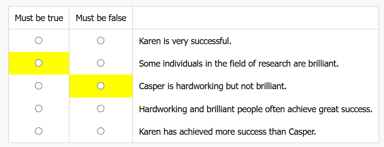 We know that all very successful individuals are both hardworking and brilliant. Since Casper is very successful, he must be both hardworking and brilliant. This makes the statement that Casper is hardworking but not brilliant must be false.