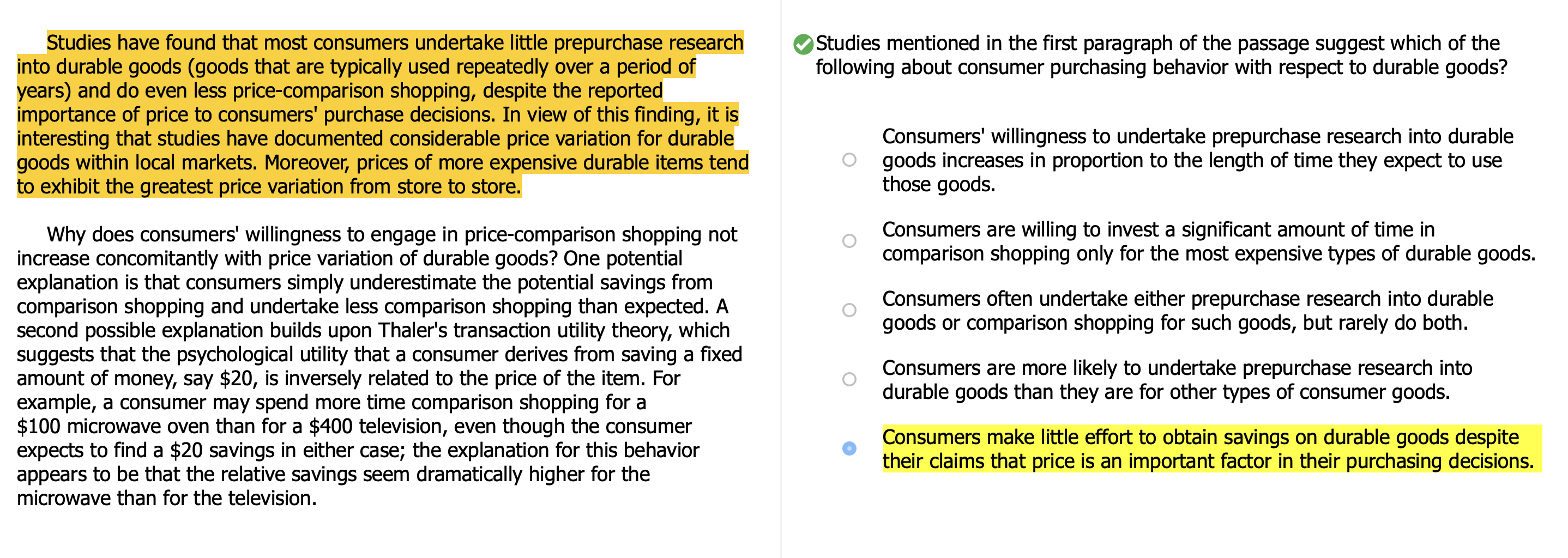 6. Studies mentioned in the first paragraph of the passage suggest which of the following about consumer purchasing behavior with respect to durable goods?