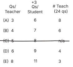 2. Use logic to eliminate answers: The number of teachers (T) must be a whole number. We know `T = 24 / Pt`. This means Pt must be a factor of 24.