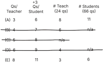 1. Identify the target: The question asks for the number of problems each teacher solves (Pt). The total problems students solved is `90 - 24 = 66`. Our goal is to find which answer choice results in students solving exactly 66 problems.