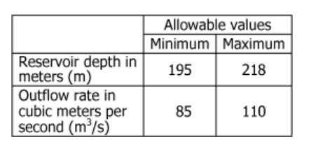| An upstream water division project on the Clear River permanently reduces the average inflow to the reservoir by 50³/s | ||