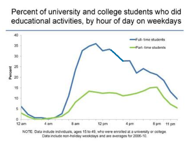 So, at 10am, a similar % of part time students are studying as full time at 11pm