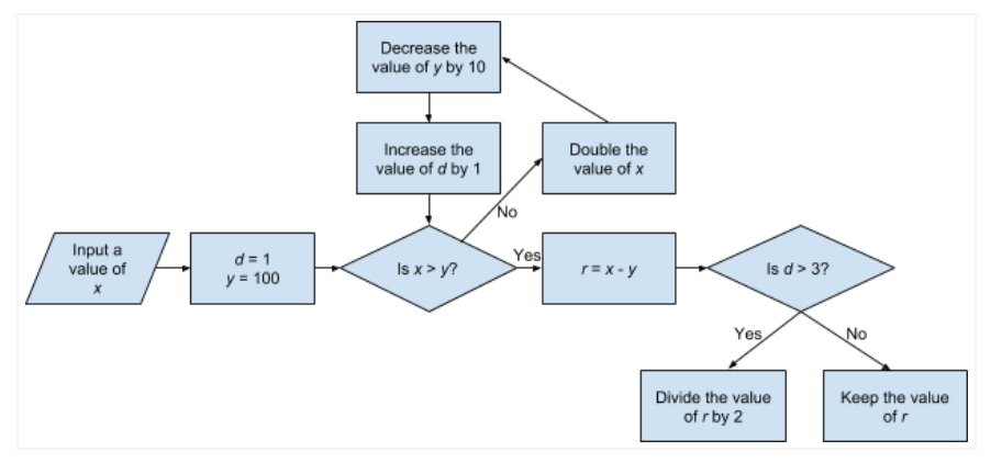 The algorithm represented in the flow chart is designed to produce a value for r based on an input value of x.