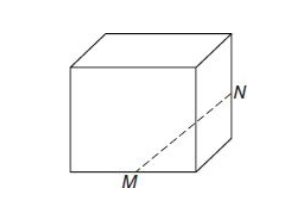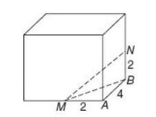 Official ExplanationIf s is the side length of a cube, then the cube’s volume = \(s^3\). Here, \(64 = s^3,\) so \(s = 4,\). Then AB = 4, and MA = NB = 2 in the figure below, because M and N are midpoints of two of the edges.