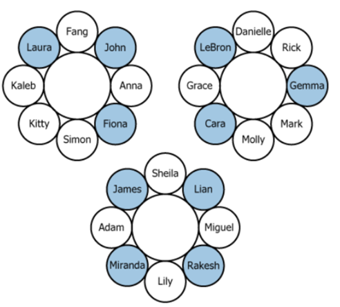 and for the second circle , there are Adam , SImon Fiona , Rakesh ( white , white , blue , blue ) . Hence all problems get resolved.