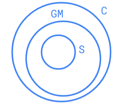 This creates a clear nesting of circles: small circle inside middle circle, and middle circle inside big circle. Together they show that the group of respondents who