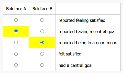 reported being in a good mood, so each premise connects a different idea to the same group. In logical terms, Premise 1 says that the group who