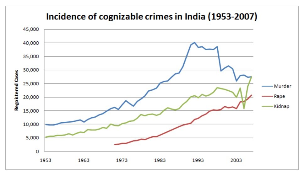 Q1. Suppose each of the Prime Ministers of India tried their best to eliminate the number of cases of crimes in the country during their rule, the prime minister in the time period of ___________ was the most successful.