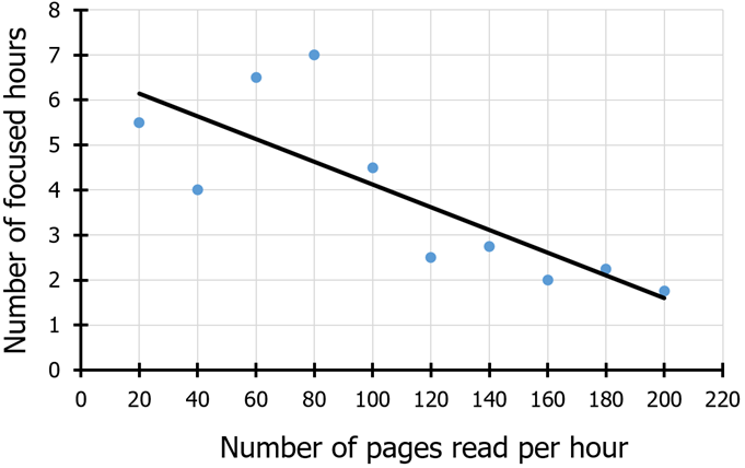 Question 2: According to the trendline, each 0.5-hour increase in the number of focused hours corresponds to a decrease of approximately______________ pages read per hour.