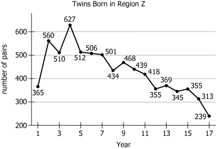 Year 17 had the least number of twin births and therefore had the least number of births.
