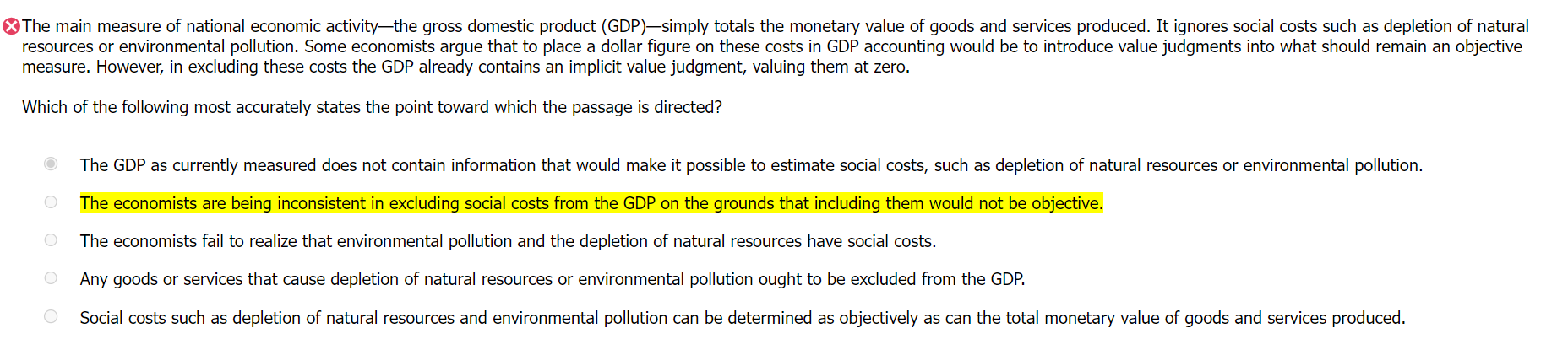 B. The economists are being inconsistent in exluding social costs from the GDP on the grounds that including them would not be objective.The passage supports this conclusion.