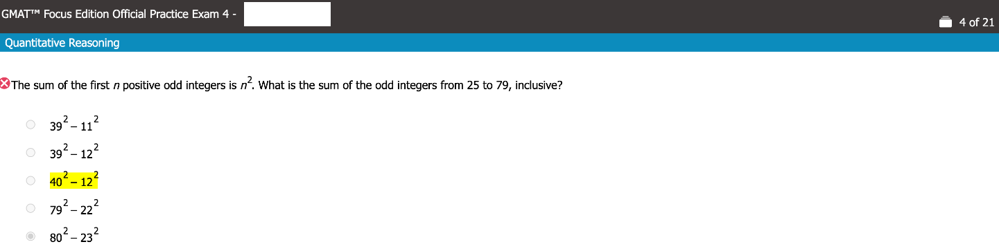 Thus Sum of odd integers from 25 to 79 = Sum of odd integers from 1 to 79 - Sum of odd integers from 1 to 23 (chose 23 as we need 25 in our final calculations).