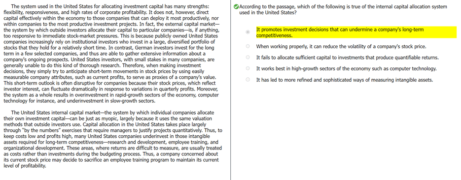 2: According to the passage, which of the following is true of the internal capital allocation system used in the United States?