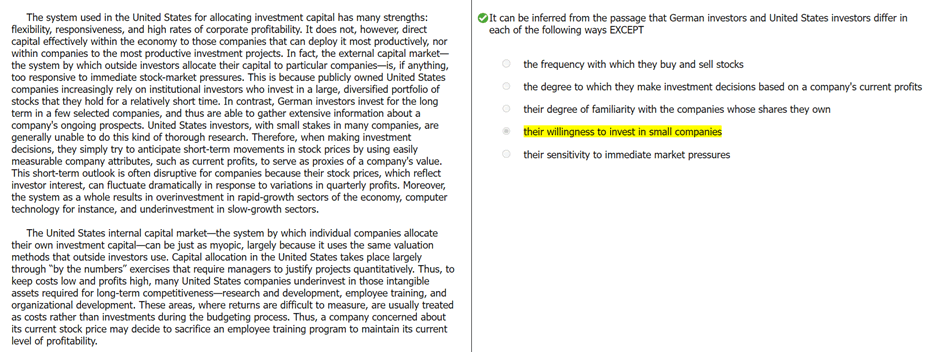 3: It can be inferred from the passage that German investors and United States investors differ in each of the following ways EXCEPT...