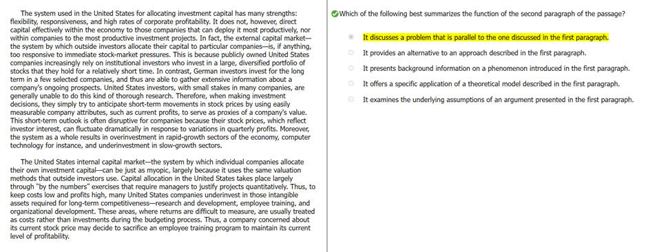 Correct. The second paragraph describes a problem—the internal capital allocation system—that is similar to the issue with the external system discussed in the first paragraph. Both are criticized for focusing excessively on short-term measurable outcomes.