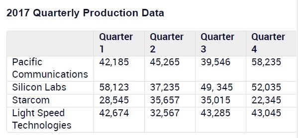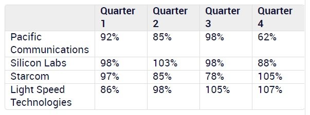 | Pacific Communications had the greatest range for the four quarterly figures. | |