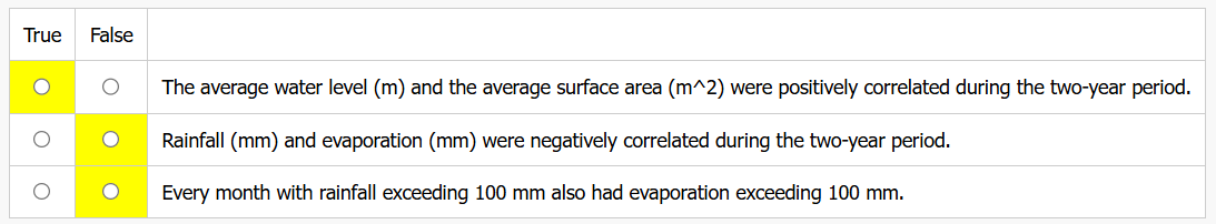 | Every month with rainfall exceeding 100 mm also had evaporation exceeding 100 mm. |