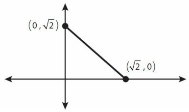 In the figure above, what is the value of x such that the areas under the line from 0 to x, and from x to \(\sqrt{2}\), coincide?