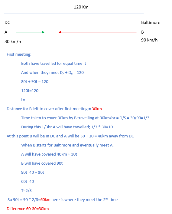 Distance between meeting pt 1 and pt2 = 60-30 = 30.