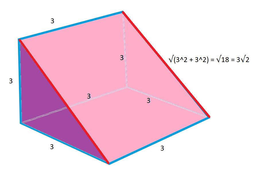The triangle has 3 sides - \(3,3,3\sqrt{2}\). This makes the triangle an isosceles