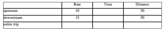 But we’re seemingly told nothing about time, and the only thing we know about distance is that it is the same in both directions. So what to do? As with almost every problem involving a multistage journey, set up this chart: