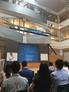 Pre-MBA courses looks chill, right? Nope. I took all the courses offered for Pre-MBA because of the following reasons: I wanted to maximize my $5,000 deposit, I was so excited to meet my classmates, and I need a refresher in all of these subjects. However, I found myself extremely exhausted this month. I had classes until 8:30 PM. I had one 6-hour Excel class during a Sunday, and I constantly found myself in social/networking events in the morning and at night. Honestly, I have no idea how we all survived up to this date. For future Rotman students, if you do not have anything to do while waiting for the pre-MBA courses, start improving your Excel capabilities and start reading books! (Books to Read Before Your MBA) If you are targeting consulting and has a GMAT score of lower than 700, it might be a good idea to start reviewing for a retake. (Yeah, I'm so sorry to be the one to deliver this bad news.) Also, be prepared to do a lot of networking events. You'll eventually find yourself becoming more of an extrovert as time passes by. I. Self-development A. Self-development Lab: Voicing Yourself If you want to have fun while improving your presentation skills, I recommend that you take this class. 1. Various Exercises on the Floor ![]() Can you find the girl in navy blue checkered shirt? That's me lying down on Rotman's floor. Photo by Ronald Replan a. Lie down. Lift up one leg towards your chest. Then, move your leg sidewards. Bring it back to the center; then, throw it away as you bring it back to the floor. b. Lie down. Lift up two legs towards your chest. Move your legs sidewards. Then, stretch your hand above your head on the floor. And rotate your hand like a helicopter's rotor blade. 2. Sound Exercises Imagine a/an a. jewel on your b. body part and try to emit the c. sound using that body part as a resonator. Focus the vibration on that body part. 1. a. Ruby b. Belly Resonator c. Uuuuu 2. a. Gold b. Solar Plex Resonator c. Oooooo 3. a. Emerald b. Chest Resonator c. Aaaaaa 4. a. Purple crystal b. Head Resonator c. Iiiiii Now, imagine a hot potato inside your mouth. Raise the root of the mouth. This is how you produce a loud voice. 3. Things You Should Pay More Attention to a. Feet b. Hand c. Back Rib d. Rotating your hand e. Rib Massage f. Reaching up the pipe g. Breathe easier h. Soft knees i. Eye Contact j. Jaw release k. Pelvic tilt l. Root of the mouth = more volume, more sound 4. Rhythm and Vocalization We also did this crazy rhythm marching that we enjoyed. We were assigned specific numbers: 4, 3, and 5. Let's say I was assigned 4. On the first count, 1, step your right foot forward, let your left foot stomp on its current place, bring your right foot back, and stomp your left foot again. Repeat the cycle. At first, we all cannot do it properly because it was too funny when you try to do it, especially together with your classmates. We had a series of practice, and everyone improved so fast. When we were able to do it properly, you could just see the joy in every person's face. It was one of our unforgettable experience as a class team. Afterwards, we had another voicing activity using the following chants: Va Room Ba Va Room Ba Ley Va Room Ba Ley Tush Va Room Ba Ley Tush Ka Va Room Ba Ley Tush Ka Pu No Sey *Bring your hand up and slowly throw it down while speaking the last part of each line. No Sey Rebeley Tush No Sey Rebeley Ka No Sey Ra 5. Literature and Presentation ![]() Jason Chin speaking one line from Hamlet The latter parts of the class were always dedicated to some literature. We read aloud parts of Shakespeare's Julius Caesar and Hamlet and whispered them to people with their eyes closed. We also tried to become lawyers defending why or why should not Hamlet kill himself. ![]() Just little kids listening to their teacher attentively Our professor also told us an extremely tragic myth that she divided into multiple parts. We were supposed to print our own image in our mind as she told the story. She said that it was a very important training to make picturing as a skill and that education tends to wipe it up, but it is like a plant that needs a little bit of watering to bring it back. She asked us to retell the story to our partner and try to recall a time when we experienced the same situation/tragedy in our lives. The conversations between each partners became so intense and people got caught up. Some were still staying at their place to continue to hear about his/her partner's story even though the professor was already calling us to gather again to listen to the next part of the tragic story. 6. Other Key Takeaways: