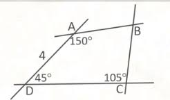 we can work out angle B as 60 ... 360-45-150-105=60