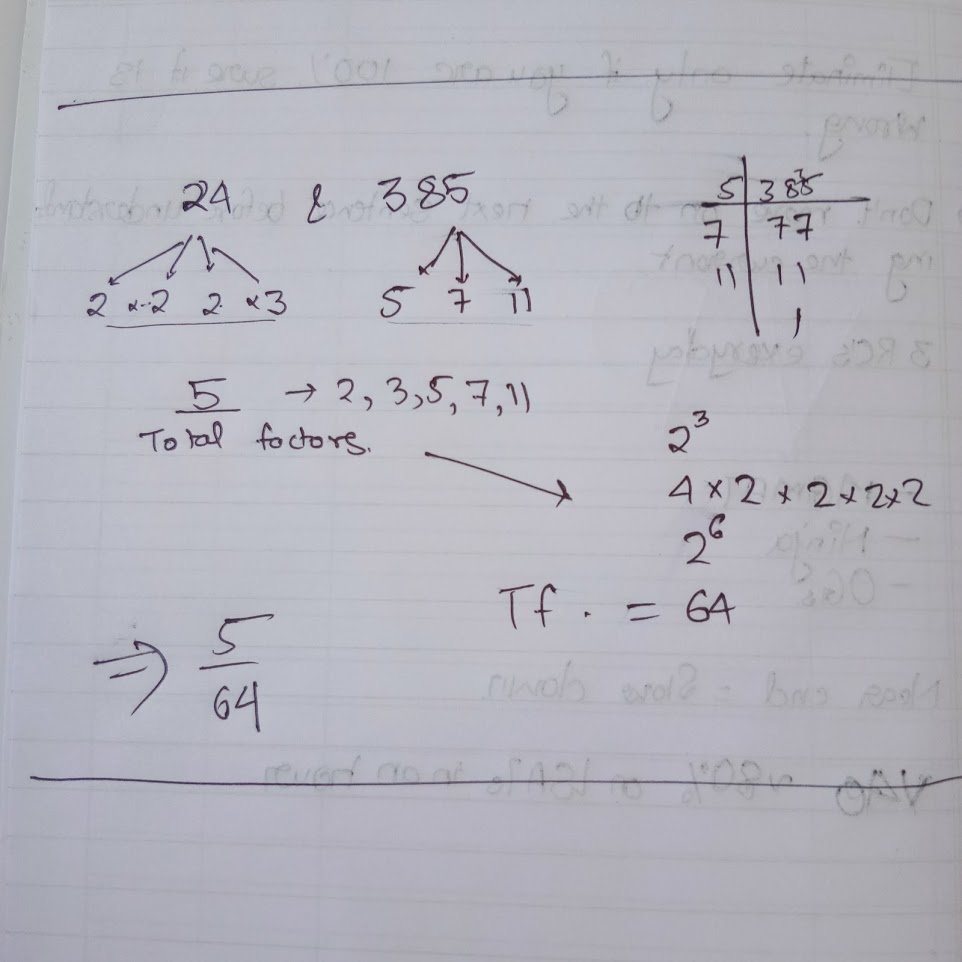 So number of factors of the product \(24*385 = (3+1)*(1+1)*(1+1)*(1+1)*(1+1) = 64\)