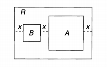 In the figure shown, squares A and B are in rectangle R. The area of rectangle R is 216. The width (vertical dimension) of rectangle R is 12. The area of square A is 4 times the area of square B. The sum of the areas of squares A and B is 80. What is the value of x?