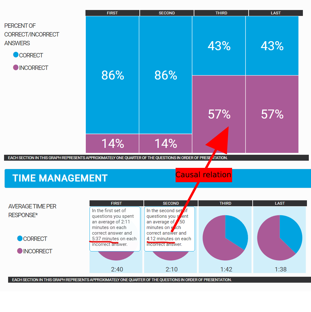 Result of all of this: I was getting sporadic 700+ mock scores. Sometimes I used to get 710 or 720 but most of the time my score ranged between 620-650. Clearly, something was wrong. And it was at this time I realized that my SC is affecting my score. However, it was too late and my exam date was 1 week away. I went to the exam and wished that my starting few questions should be either RC or CR. However, my first 3-4 questions were SC, and boom! I freaked out and ended with 640 (V30 and Q48). There was another blunder that I did in the exam. Best to show it using ESR report. Look at the average time I took to answer a wrong questions in Quant.