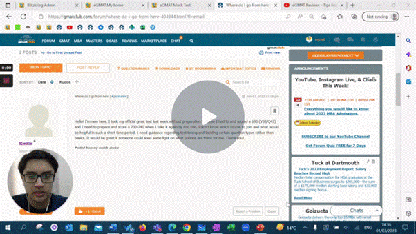 https://gmatclub.com/forum/ask-admissio ... tants-124/With a Q47/V38, you are clearly a strong overall critical-thinker - which is great - but since you did not put any significant study time in before taking the Official GMAT, it's not clear how representative this Official Score is of your actual "ability level" (meaning that you might have gotten a bit lucky or unlucky on Test Day - and you might be closer or farther from a 730+ than you currently think you are).