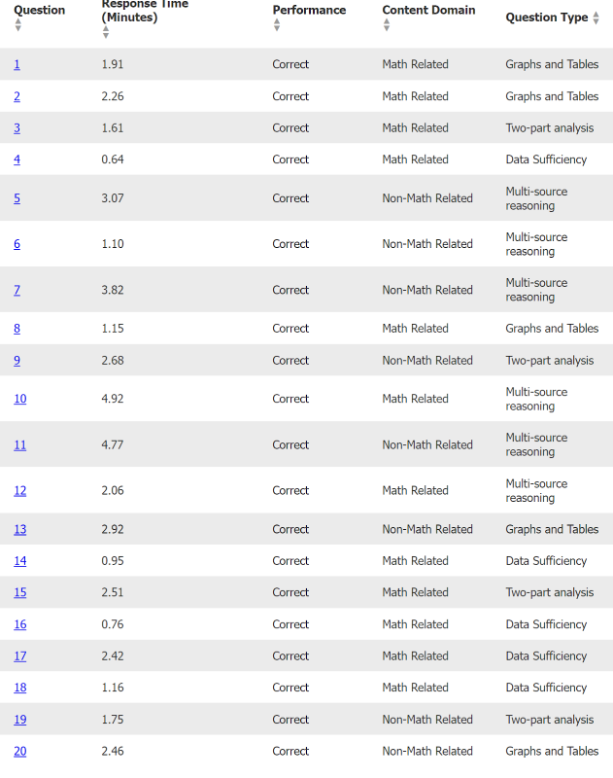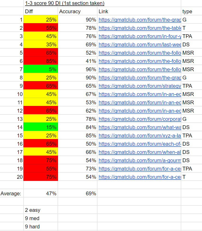 Note that only 9 of 20 questions were rated on GMAT Club as "Hard", even when scoring a 90.