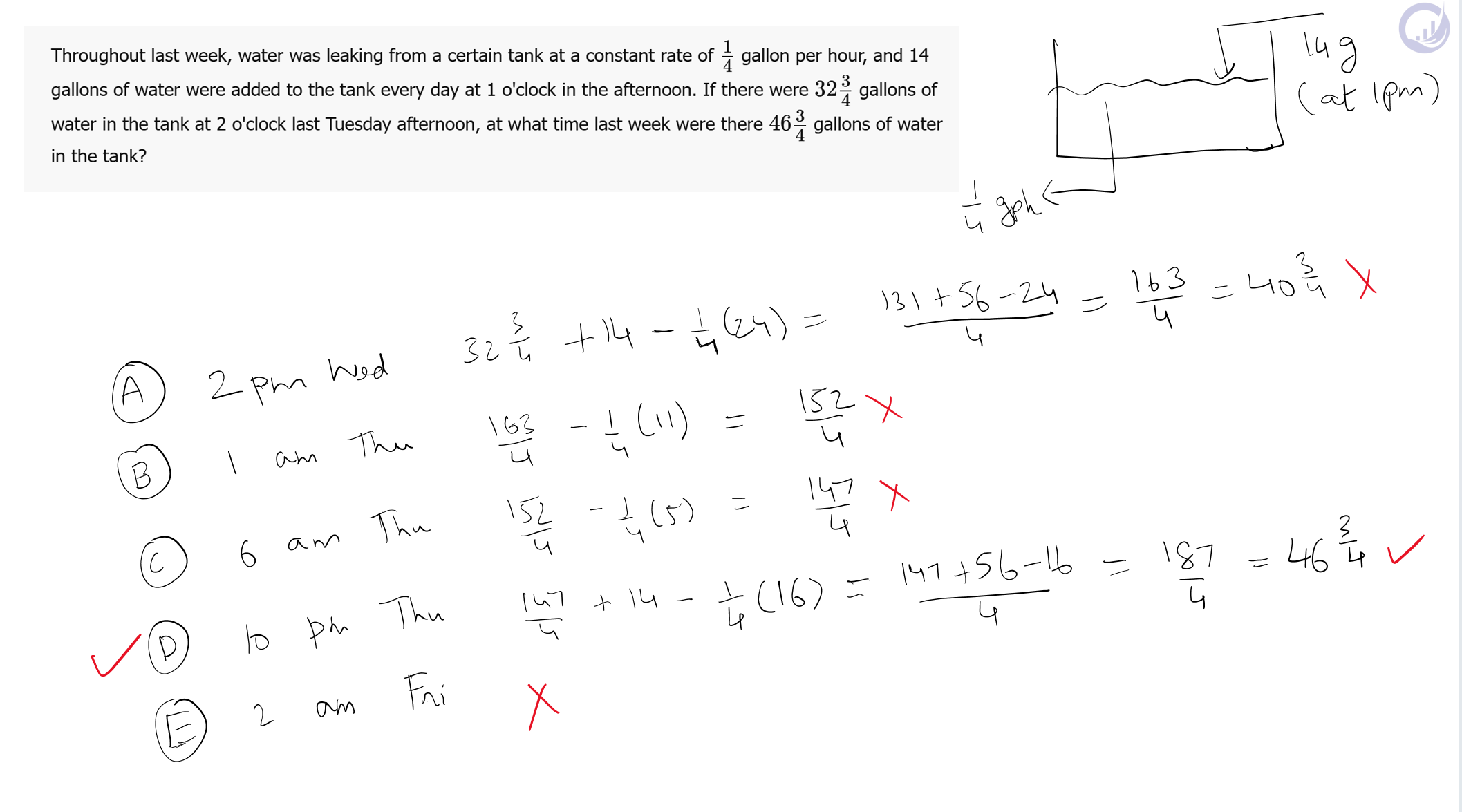 | Consumed till Wed @ 1:00 pm (0.25 * 23 hrs) | (5.75) |