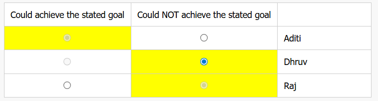 • Aditi - VijayNow, let's check what the question wants from us: for each of Aditi, Dhruv, and Raj,