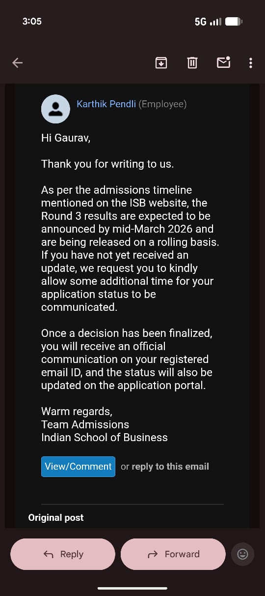 Even I got a similar response from the ISB admissions team