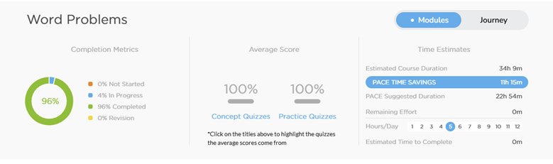 The PACE engine in the Quants course helped me save close to 42 hours of prep time which helped me speed up my timelines. In WP alone, PACE helped me save close over 11 hours: