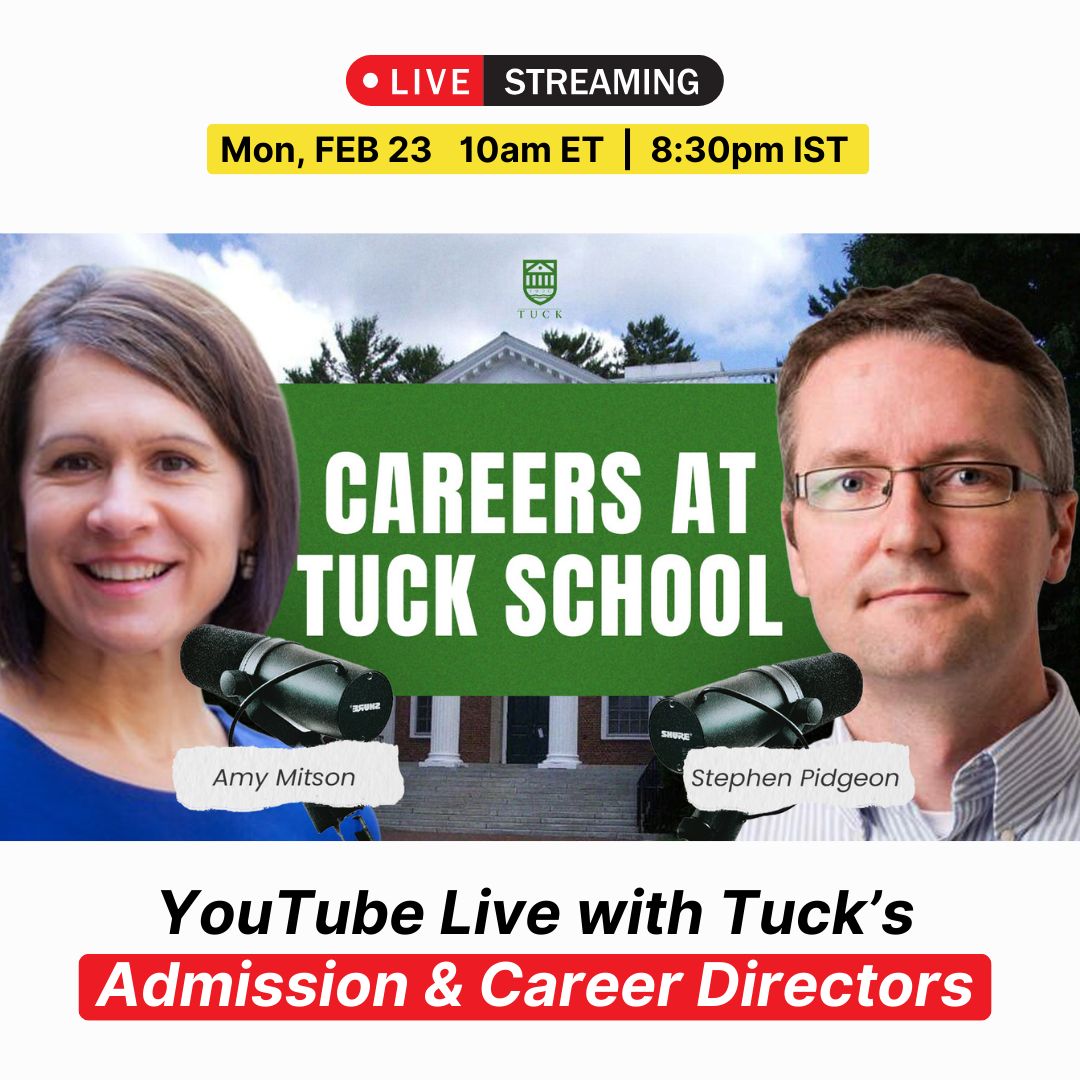 Join us TODAY on YouTube with the Admissions Director and Career Services Director of Tuck School of Business, to discuss: