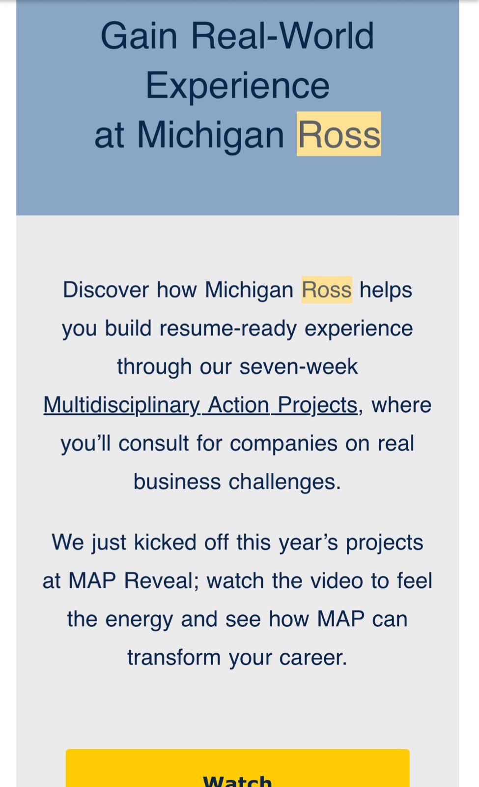 Got done with my ross interview an hr ago. It was with a Alumni ( 16yrs ago) Ross. Interviewer was very friendly and engaging. The interview was conversational and went for about 40 minutes. Questions asked:
