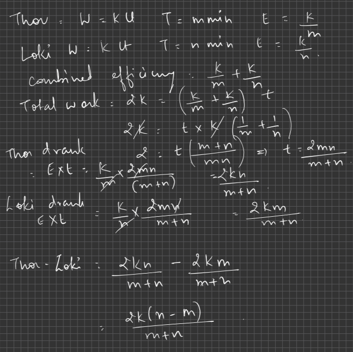 Drinking time taken when both of them drink together Thor and Loki = 2K/(m+n) => 60/5 => 12
