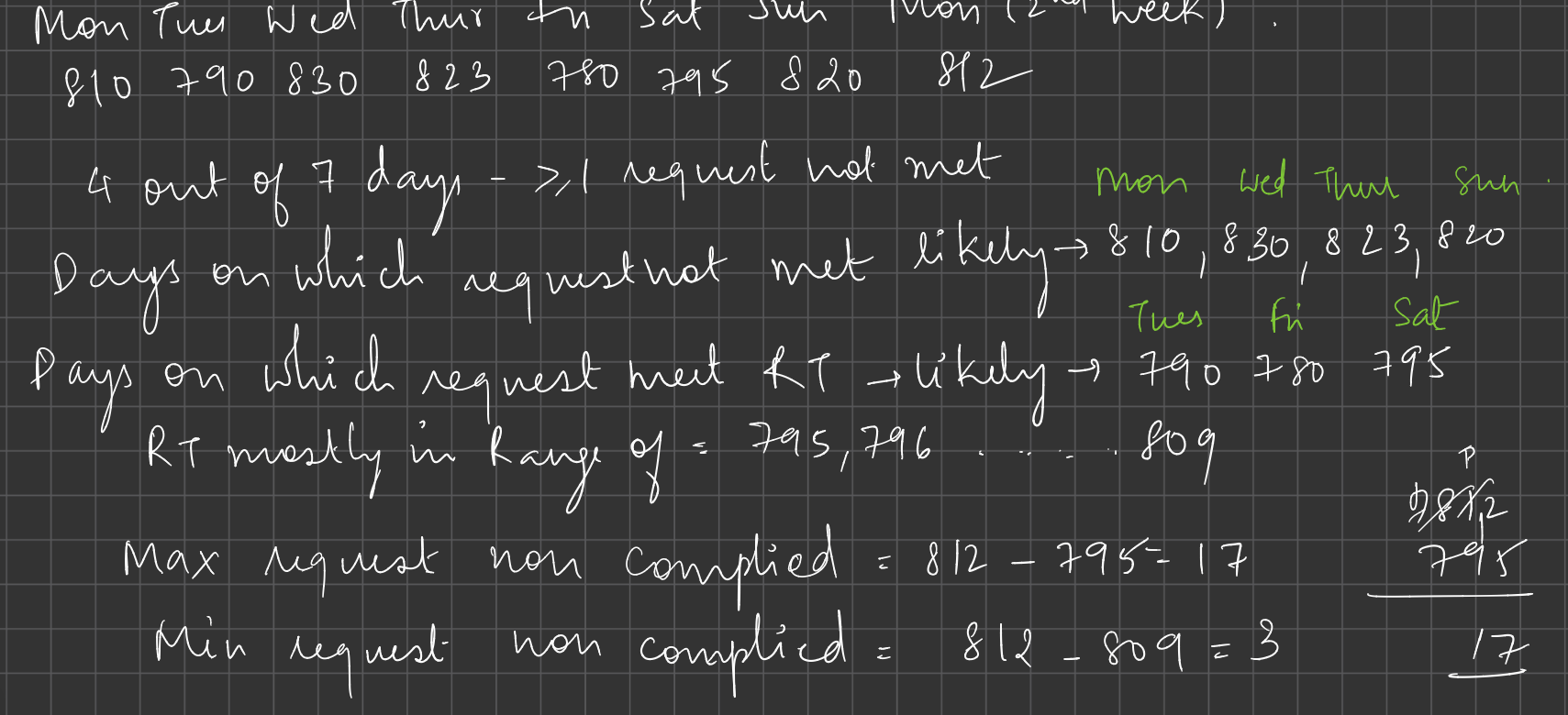 Now, the RT values must be such that four days have at least one request that has not been addressed, or three days requests must be fully addressed.