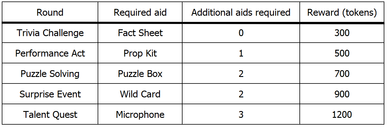 | Trading in the Prop Kit and the Puzzle Box will give the participant enough tokens to purchase 1 Wild Card. |