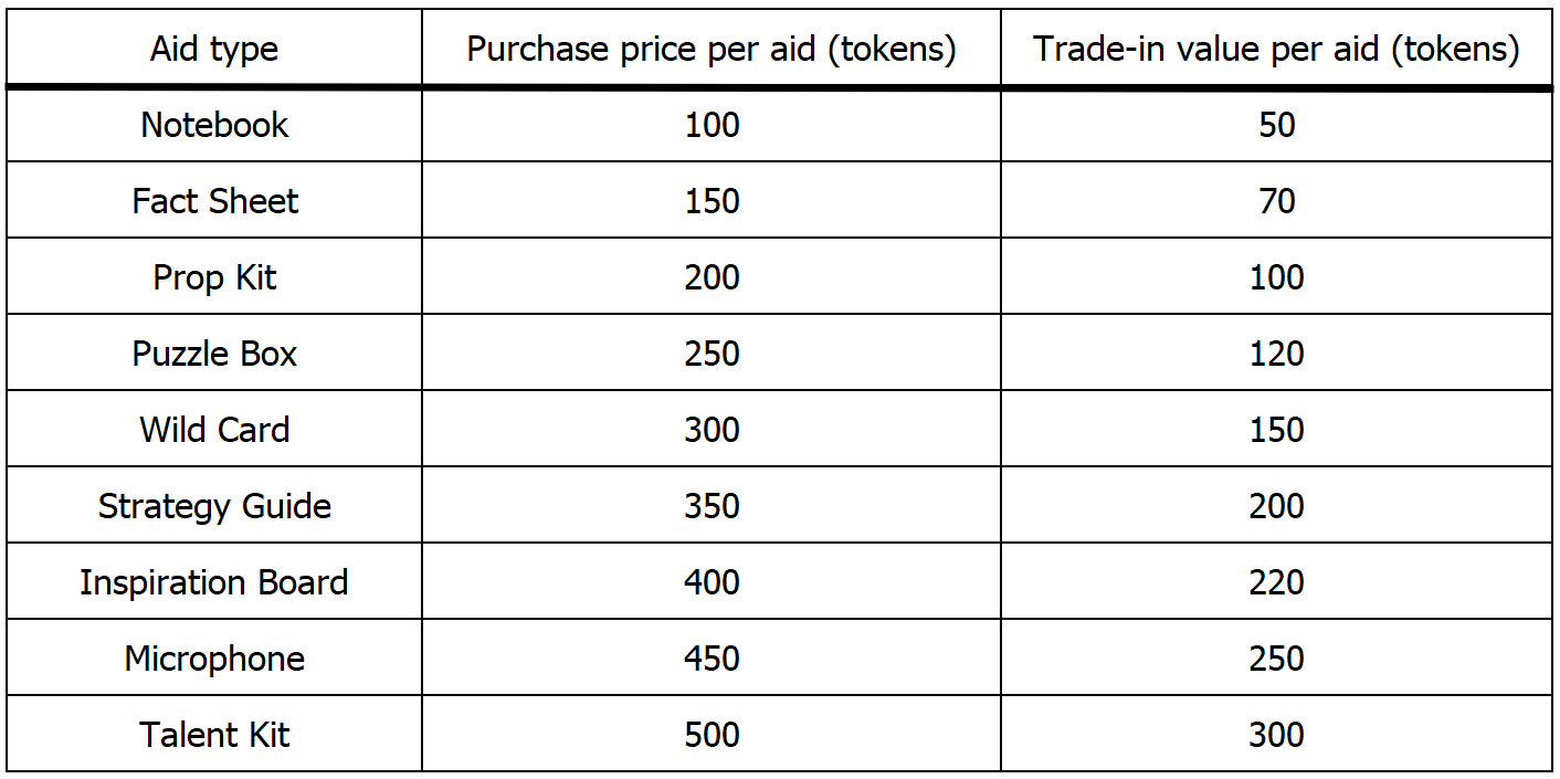 | The total trade-in value of these aids is greater than 250 tokens. | ||